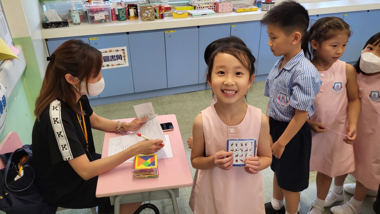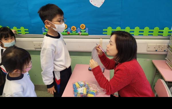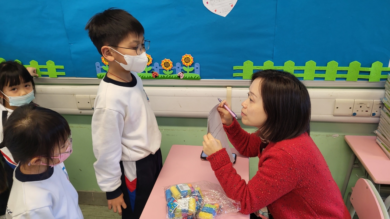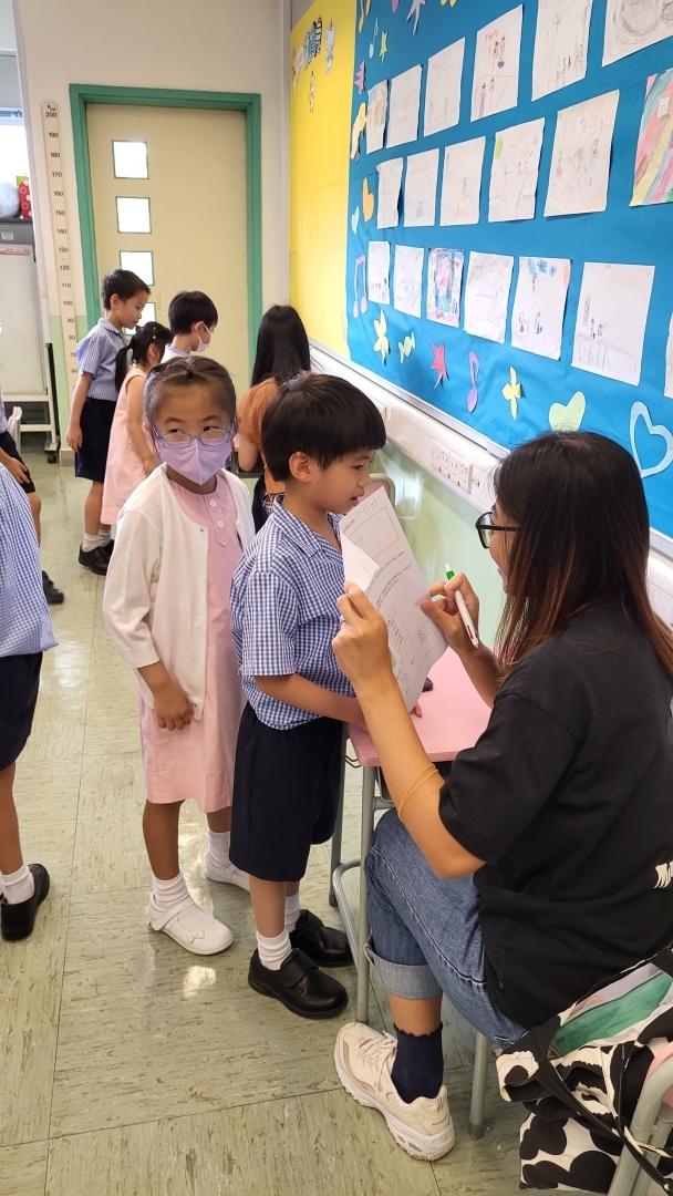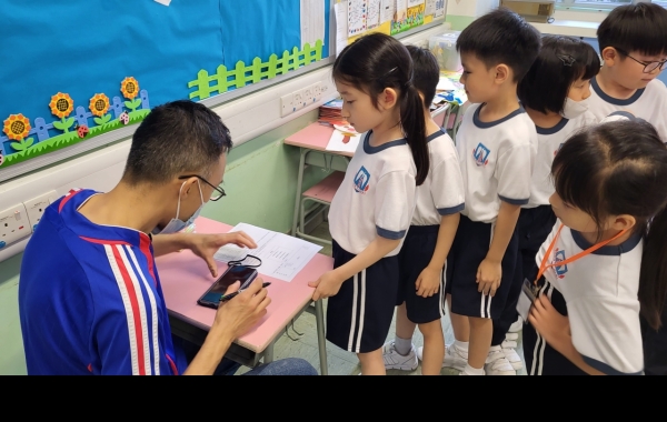 數學科全年為一年級學生安排了三次急口令活動,上學期進行了「合十歌」急口令,下學期進行了「立體圖形歌」和「報時歌」急口令。學生須在限時內向家長義工清晰背誦急口令的內容。