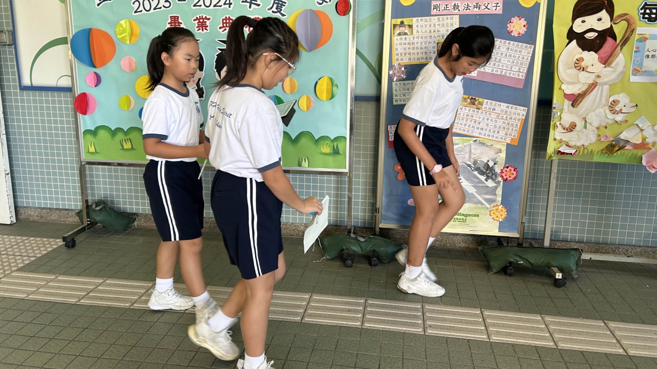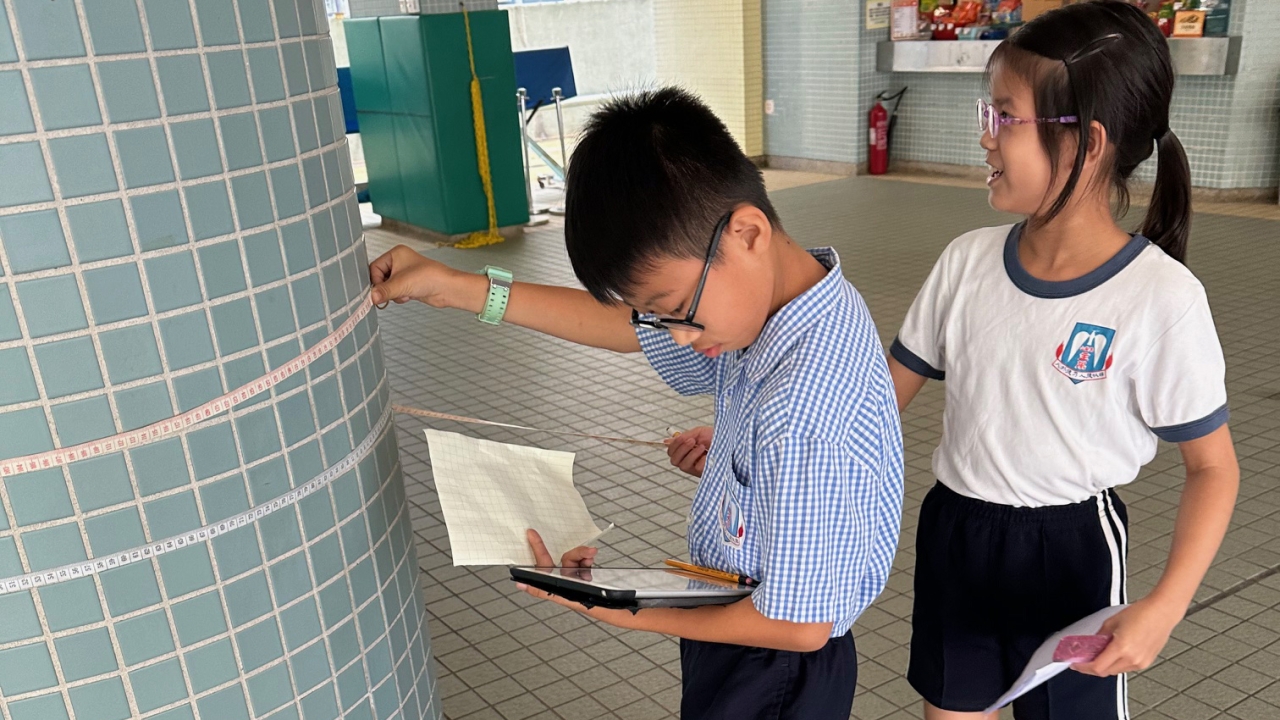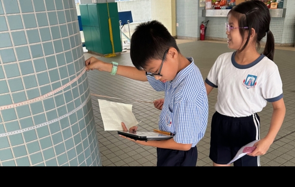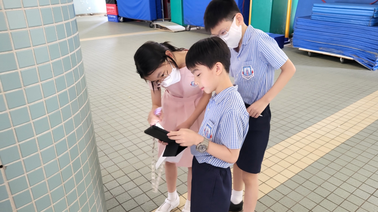 為讓學生參與多元化學習活動,本學年三至五年級學生於下學期末進行了數學遊蹤活動。學生分組於陰雨操場和課室,利用IPAD、紙筆及量度工具來解題,最快完成任務的組別為勝。