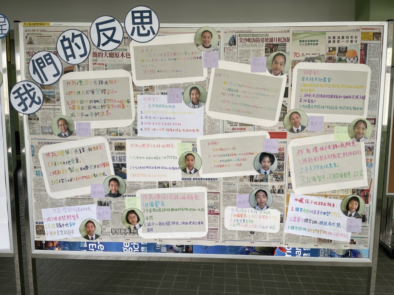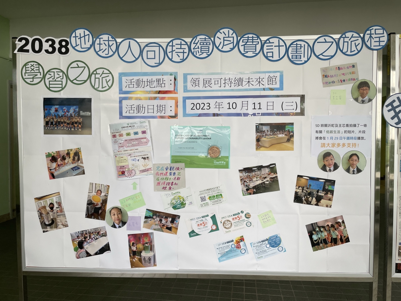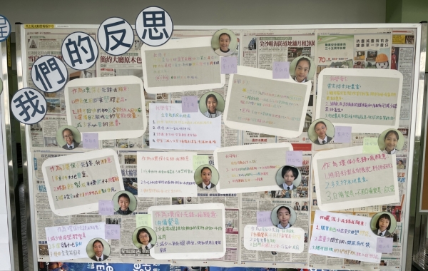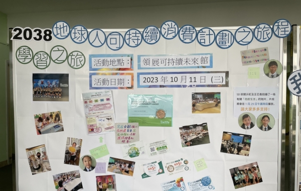 環保小先鋒於上學期到領展可持續未來館進行體驗式學習活動,學會了地球三分之一的碳排放正源自糧食系統。為了有效抑制全球暖化,人們需要減少碳足跡產生以及減少廚餘。環保小先鋒透過制作流動壁報及短片,向全校分享減少碳排放的心得。