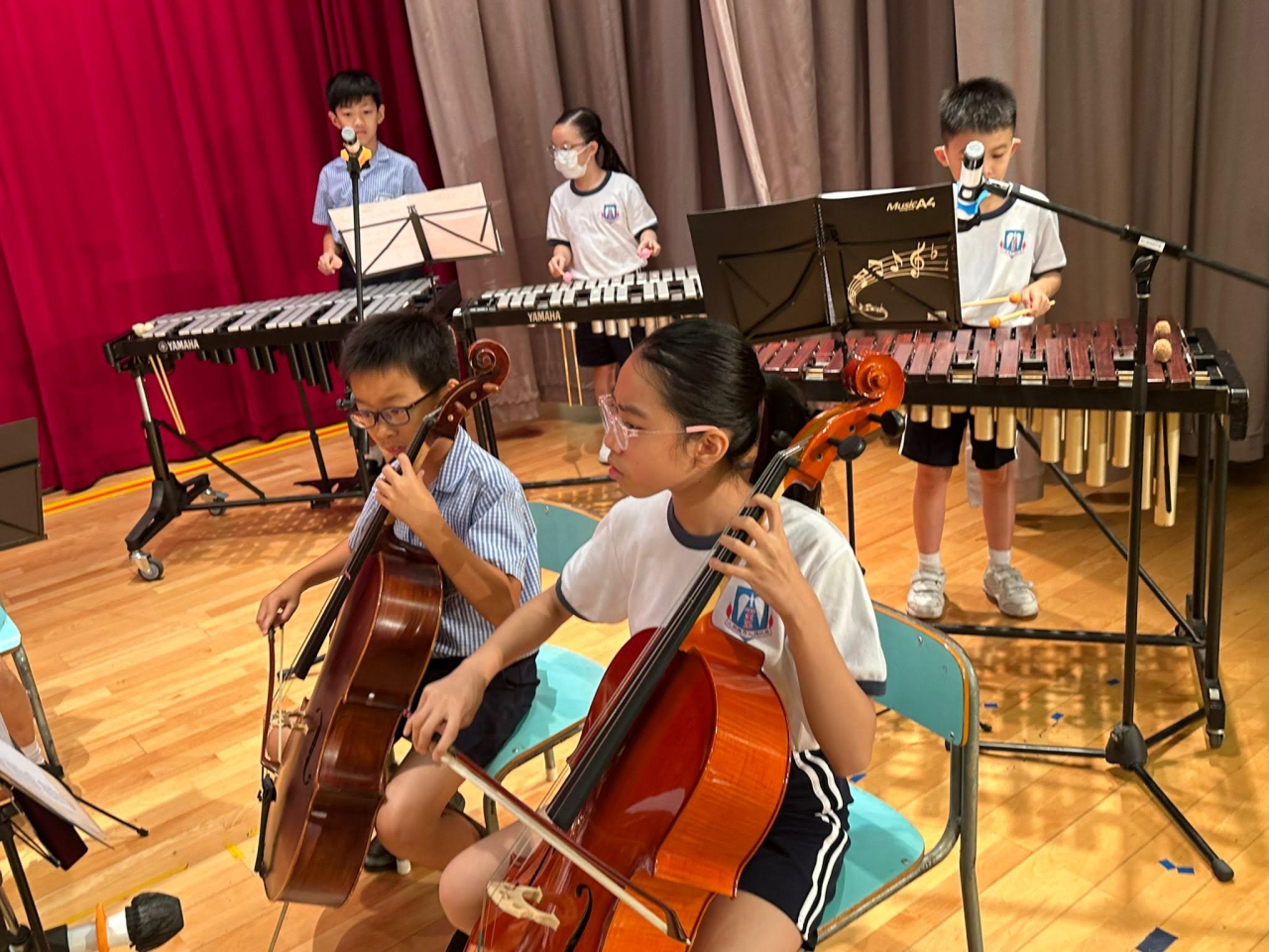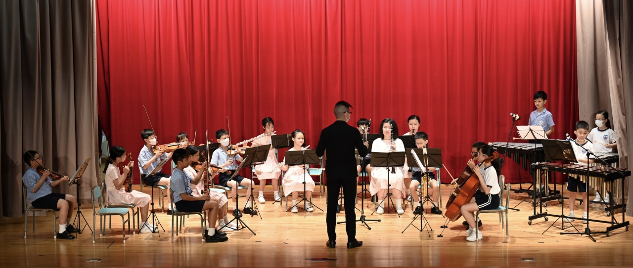 本校的管弦樂團於2014年成立,現由一至六年級三十多位同學組成。透過樂團的訓練,除了提升學生對樂器的演奏技巧及水平外,亦提升了他們的自信心和責任感,並發揮他們的合作精神。期望日後有更多同學參與其中,享受一起合奏、玩音樂的樂趣。