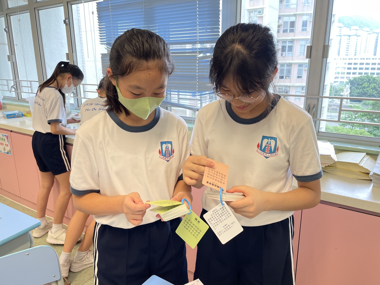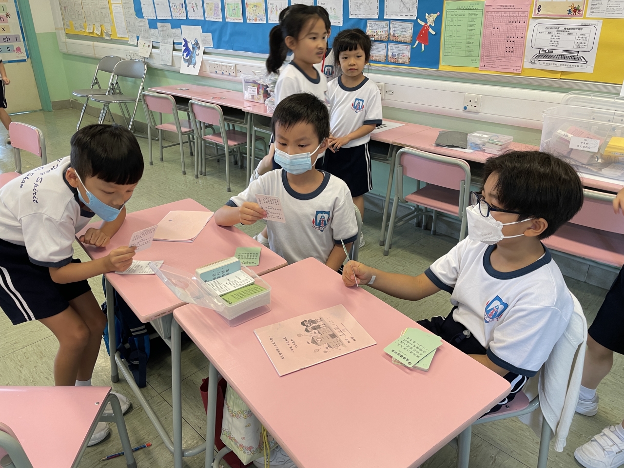 中文科在上、下學期各舉辦了一次「語文月」,讓同學們利用各種語文遊戲卡提升對學習中文的興趣,例如拼字遊戲、成語接龍、量詞配對等,同學們還可透過朗讀唐詩、《三字經》、《弟子規》等經典作品增加對中華文化的認識。